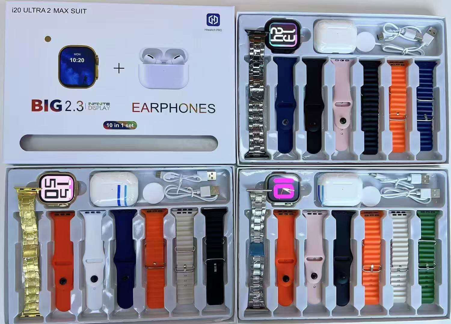 i20 Ultra 2 Max Suit – 10‑in‑1 Smartwatch & Earbuds Bundle